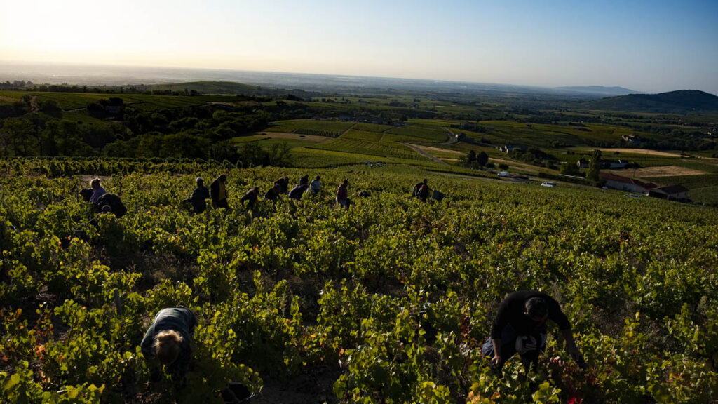 Once fermentation is complete, wines are aged in a mix of vessels, including sandstone amphoras, 500-liter oak puncheons (for Fleurie), and stainless steel or fiberglass tanks. Bottling occurs the following summer, with an additional four months of rest before release.
