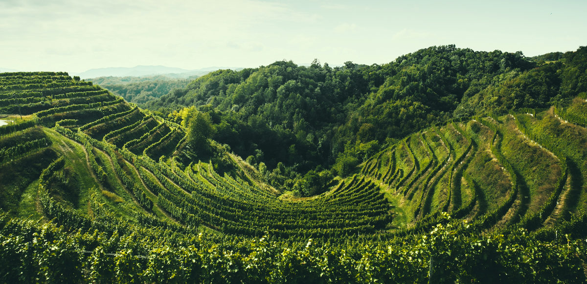 Michael describes Gorca as “a wine-growing village right at the heart of the viticultural area of Štajerska Slovenija, surrounded by a dense mesh of hills with bowl-shaped, terraced vineyards to manage the steep terrain.” The vineyards, which are at about 300 meters (980 feet) above sea level, are folded around lower-elevation forests, in an unusual inversion. Gorca sits high in the Haloze hills, surrounded by stunningly lush, steep terrain. Vino Gross’s steepest site is a 65-degree slope — rivalling Franzen’s Bremmer Calmont for razor-edge grade.