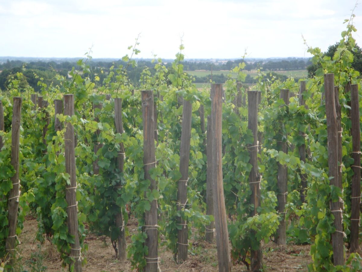 Her half-hectares each of massal selected pinot gris, pinot noir, and grolleau noir on carefully selected rootstock are trained quite uncommonly on chestnut stakes in a style Xavière feels respects the original trellising environment of vines: trees.