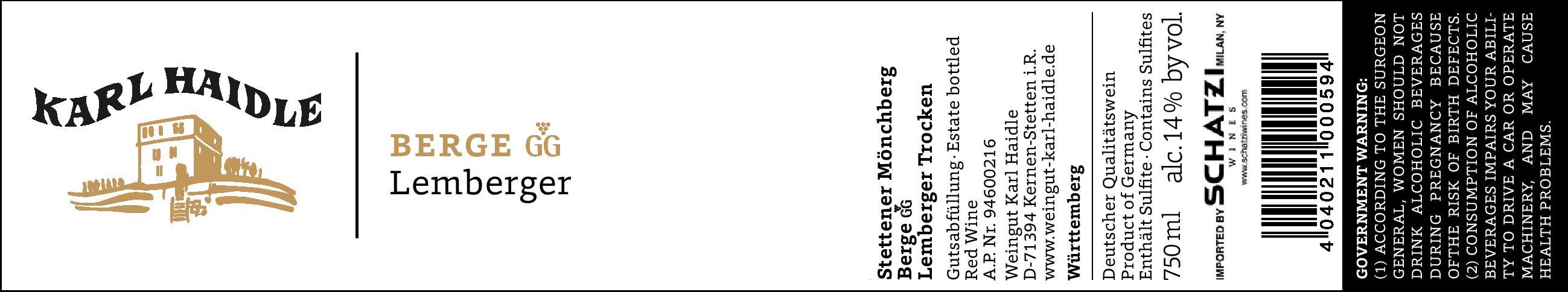 Karl Haidle 2016 Berge Lemberger Grosses Gewächs